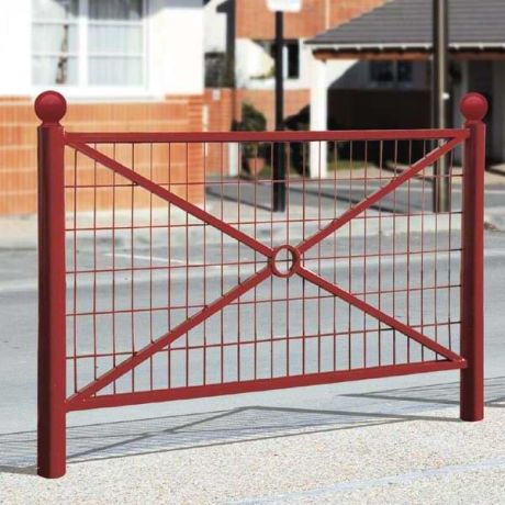 Barrière grillagée type "croix de St André" s'intégrant dans tous les environnements urbains et complétant idéalement des installations avec des potelets de ville.
