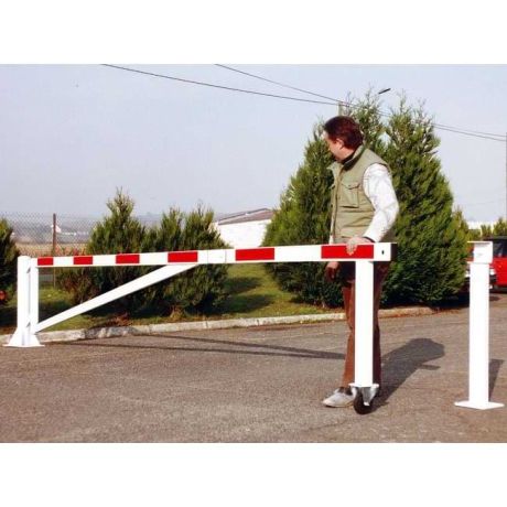 Barrière tournante très grande longueur équipée d'un support à roulette qui limite le porte-à-faux et facilite la manipulation.