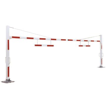 - Hauteur de passage réglable jusqu'à 3,80 m. - Largeurs de passage : 3 à 8 m. - Réalisé en acier laqué blanc RAL 9010 avec bandes réflectos rouges. - Montants D. 101,6 mm, épaisseur 4 mm, lisse aluminium section 86 X 46 mm. - Câble de tension à partir de 7 m. - Fixation au choix : sur platines 250 X 250 mm ou à sceller.