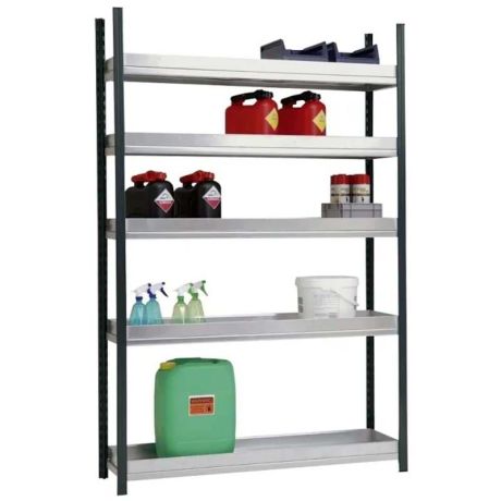 Rayonnage avec bac de rétention destiné au stockage de produits liquides